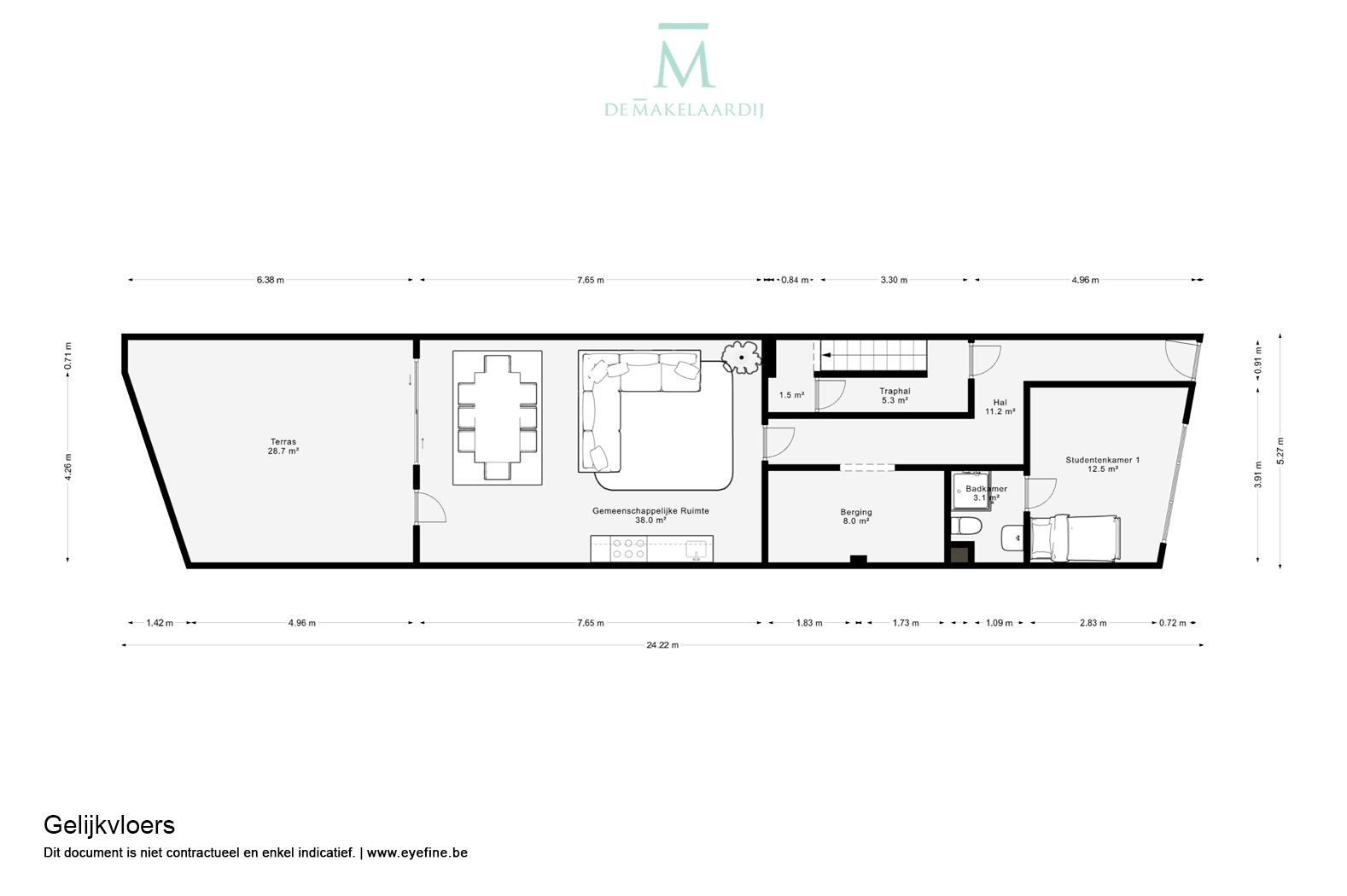 ·Deze heeft een totale oppervlakte van 12,37 m²