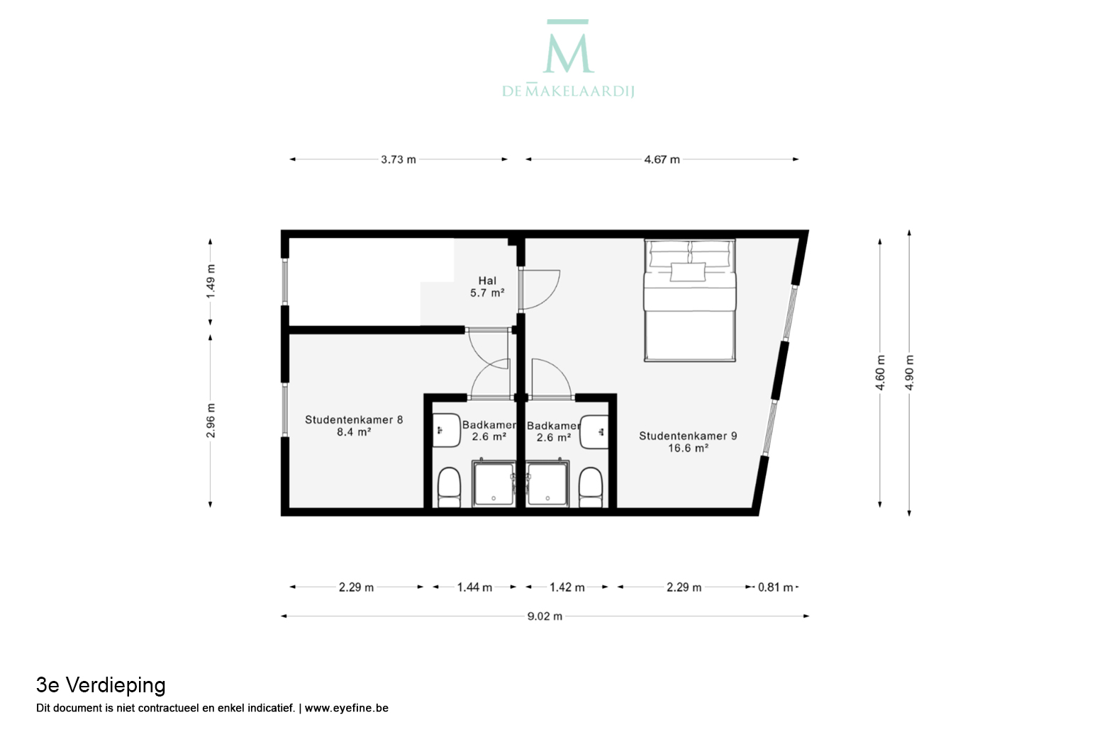 ·De kamer is bemeubeld met een enkel bed (matras zelf te voorzien), een bureau en een kleerkast. Persoonlijke aankleding en detaillering laten we aan de bewoner over (binnen de grenzen van het huishoudelijke reglement).
