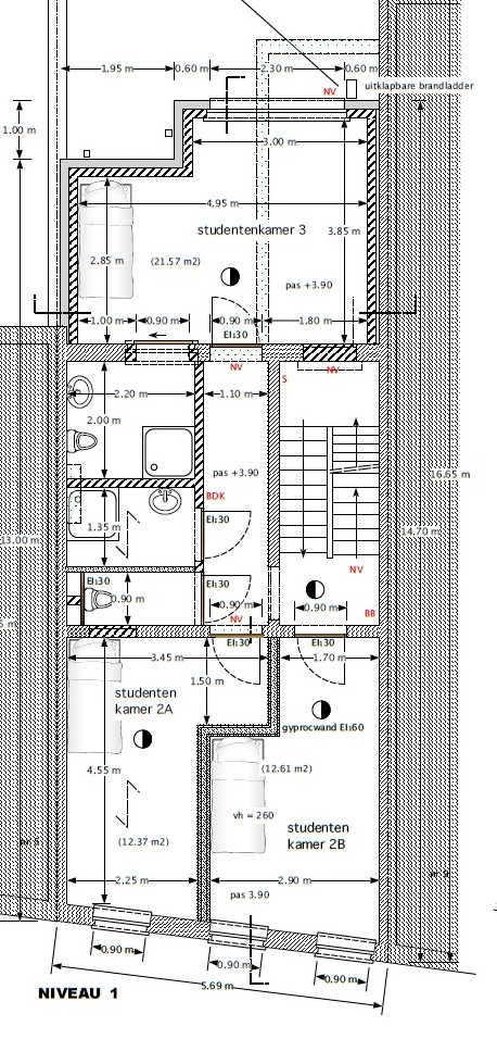 ·De kamer is bemeubeld met een enkel bed (matras zelf te voorzien), een bureau en een kleerkast. Persoonlijke aankleding en detaillering laten we aan de bewoner over (binnen de grenzen van het huishoudelijke reglement).