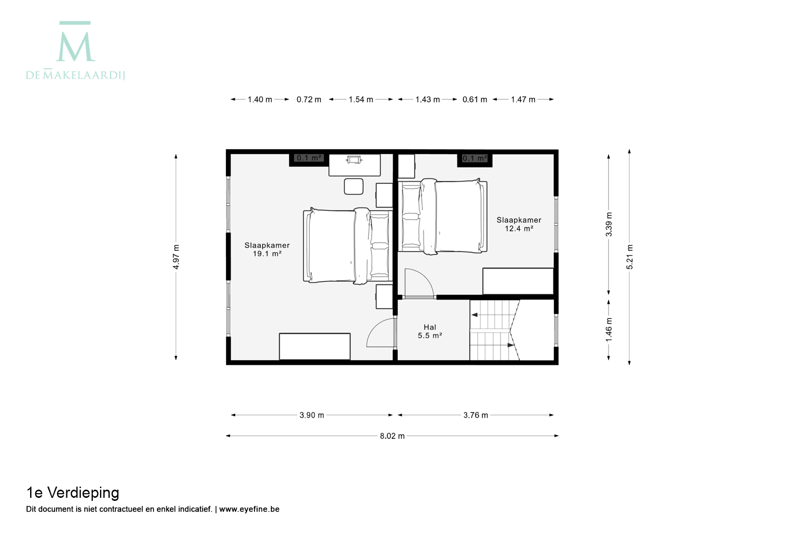 Op de eerste verdieping beschikt u over 2 grote slaapkamers. De zolder, die bereikbaar is met een vaste trap, biedt nog mogelijkheden tot het creëren van nog extra ruimtes.