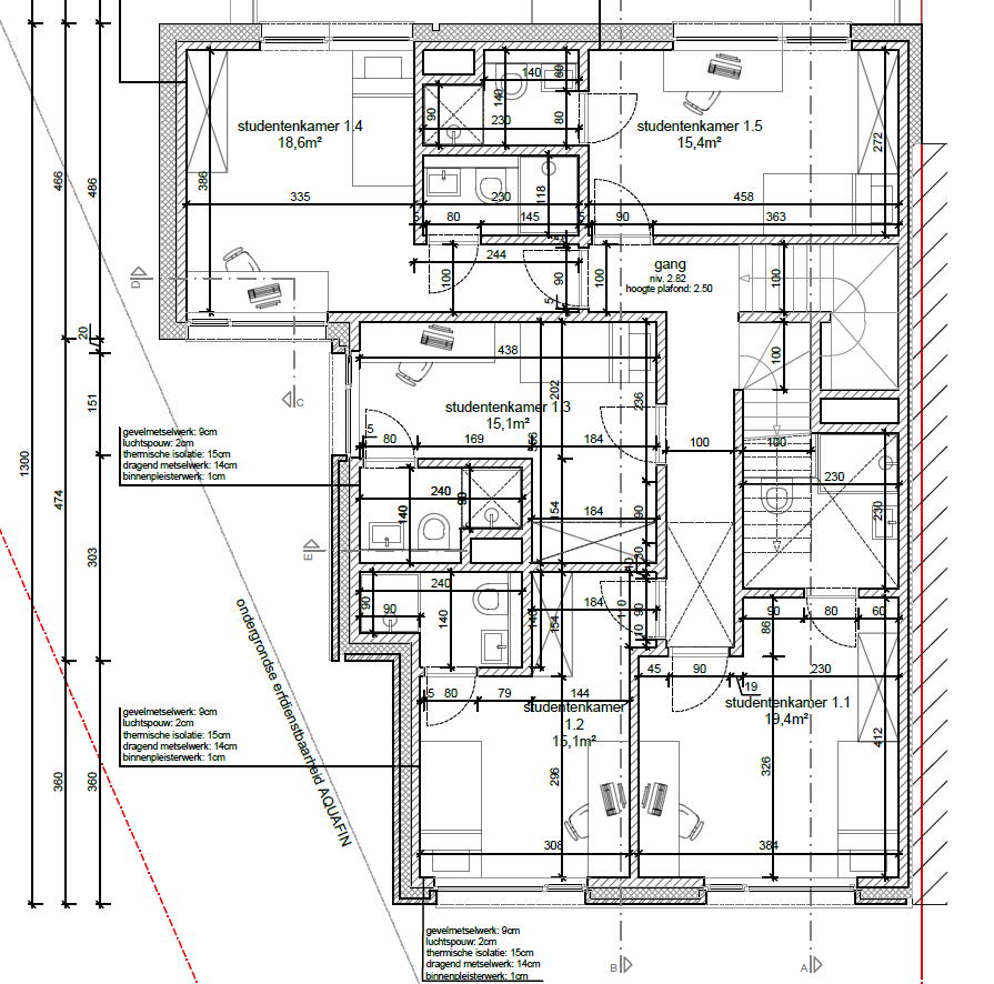 In dit modern studentenhuis vind je 11 mooie kamers, die variëren tussen 15 en 20m² oppervlakte. Elk verblijf heeft een eigen badkamer met een douche, lavabo en toilet. Op het gelijkvloers bevindt zich een ruime gemeenschappelijke keuken met aansluitend een terras. Aan het gebouw bevindt zich een handige parking en fietsenstalling.