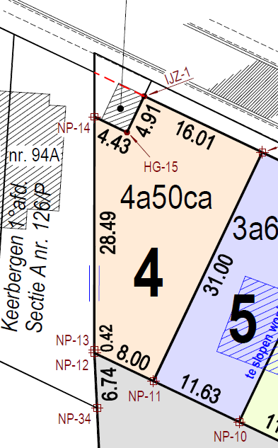 De kosten voor opmeting & afpaling en aandeel in de verkavelingsakte zijn ten laste van koper.