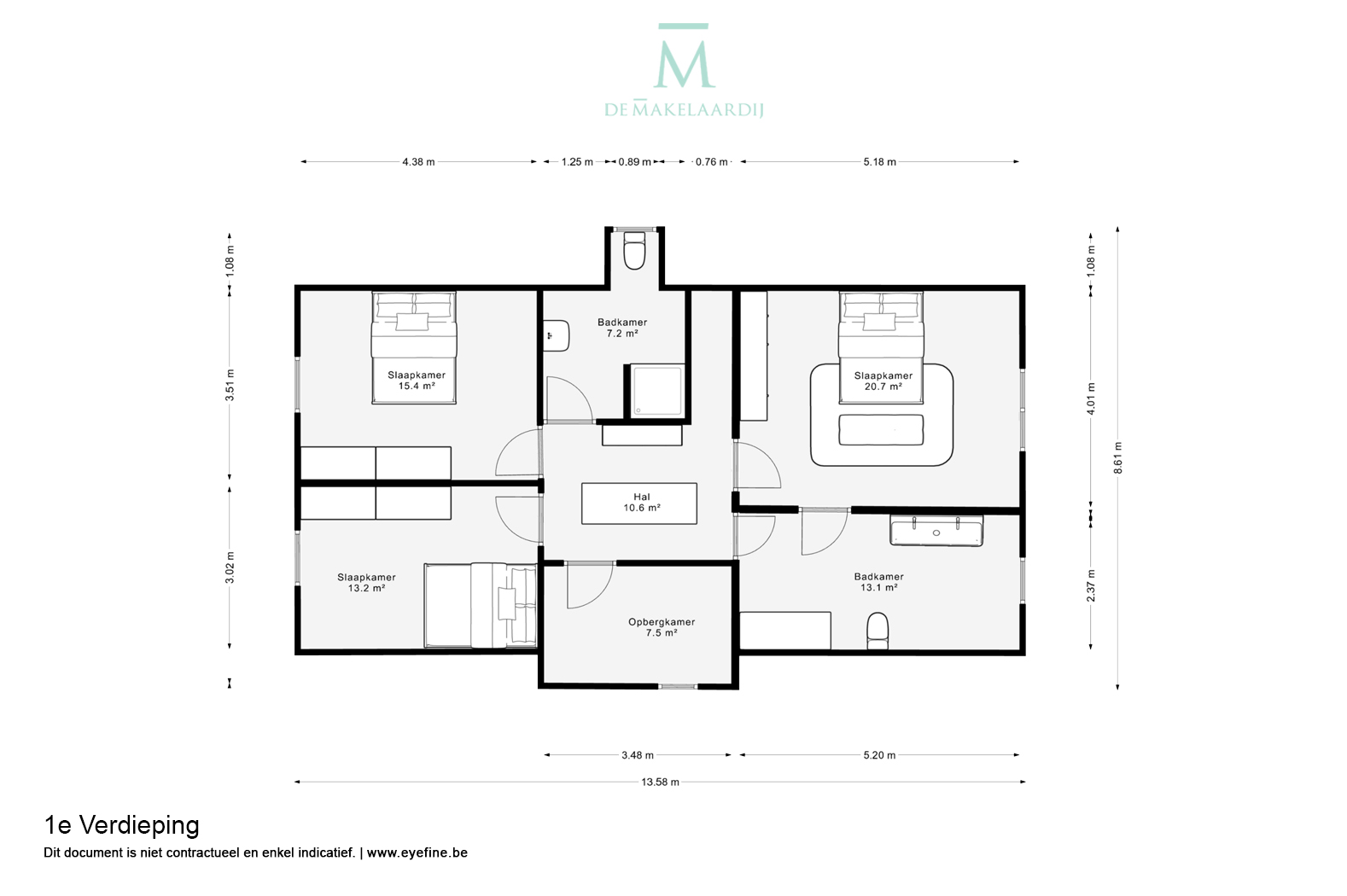 Op de eerste verdieping zijn er 3 ruime slaapkamers waarvan 1 masterbedroom met aansluitend een ensuite badkamer. Er is ook nog een tweede badkamer met een douche, een lavabo en een derde toilet. Extra spullen kan je opbergen in de zolderruimte.