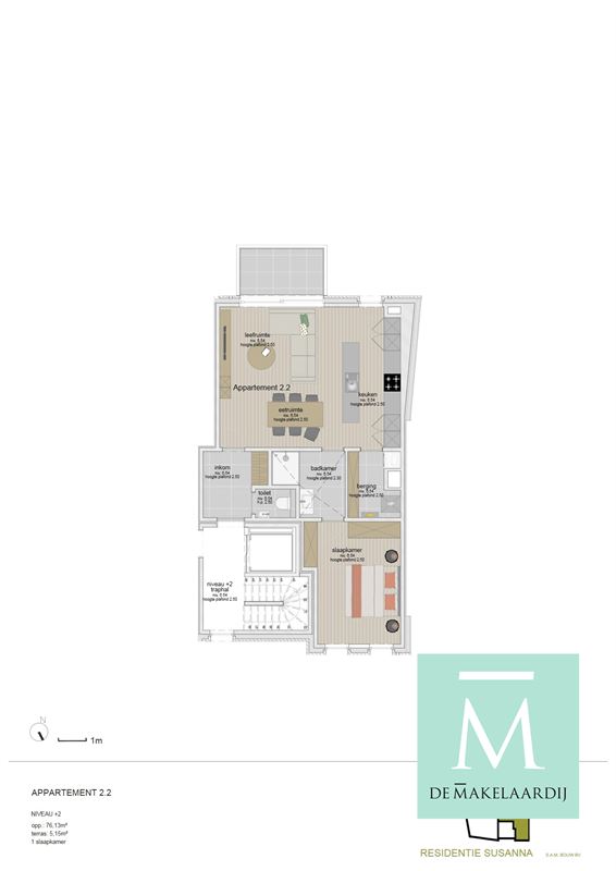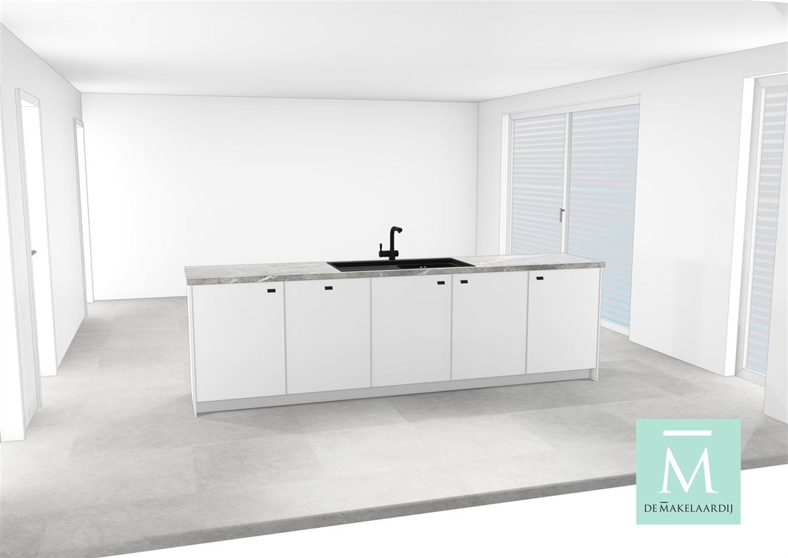U komt binnen in de inkomhal met vestiaireruimte en apart gastentoilet. Van hieruit komt u in de leefruimte. De open-plan living- en keukenruimte vormt het hart van de woning en maakt optimaal gebruik van de beschikbare ruimte. De keuken is voorzien van hoogwaardige materialen en moderne apparatuur, terwijl de woonkamer een uitnodigend ruimtegevoel creëert dankzij de grote raampartijen. U beschikt ook over een extra berging, zodat stockage geen probleem kan vormen. Op het zuidgericht terras kan u genieten van de rust en de zon na een lange (werk)dag.
